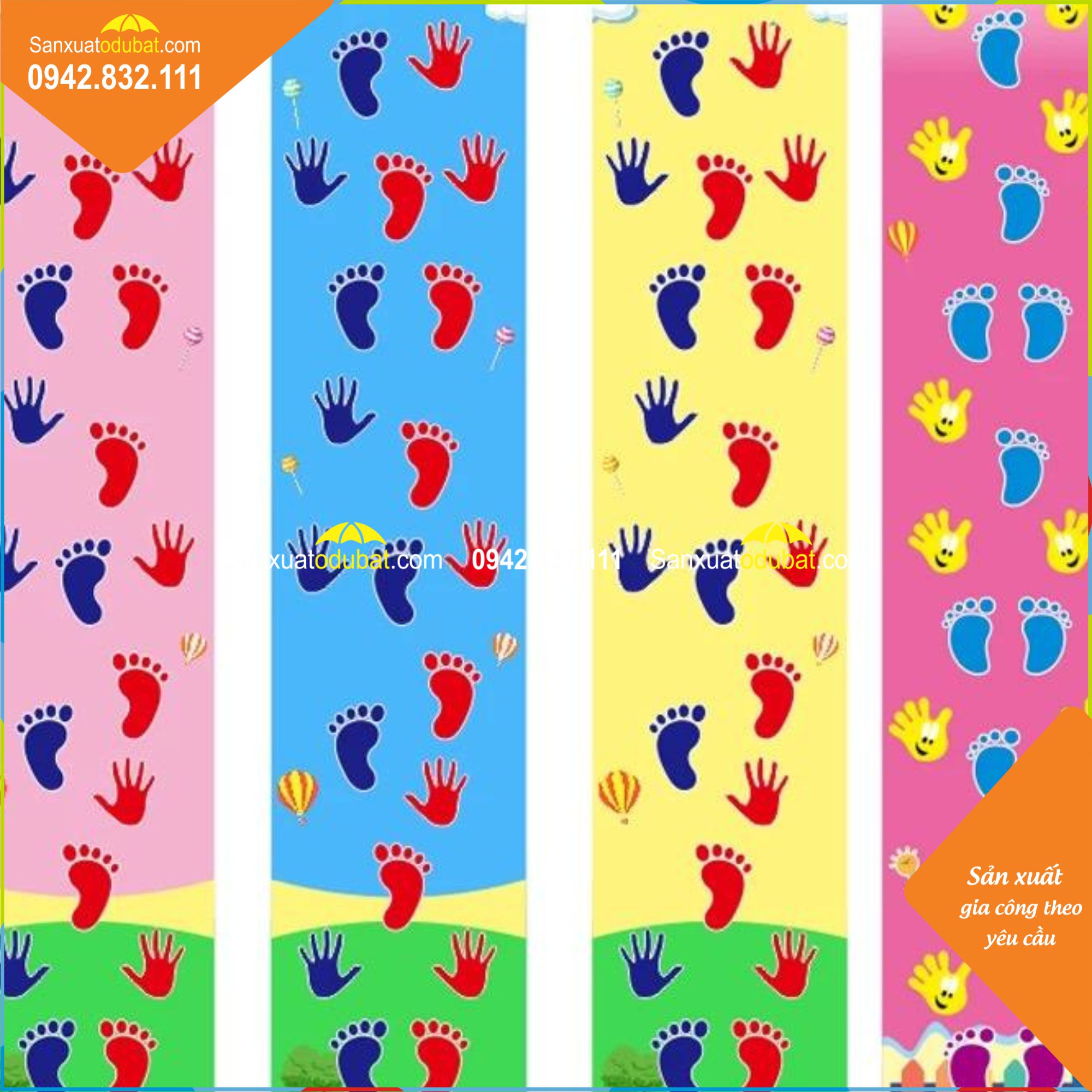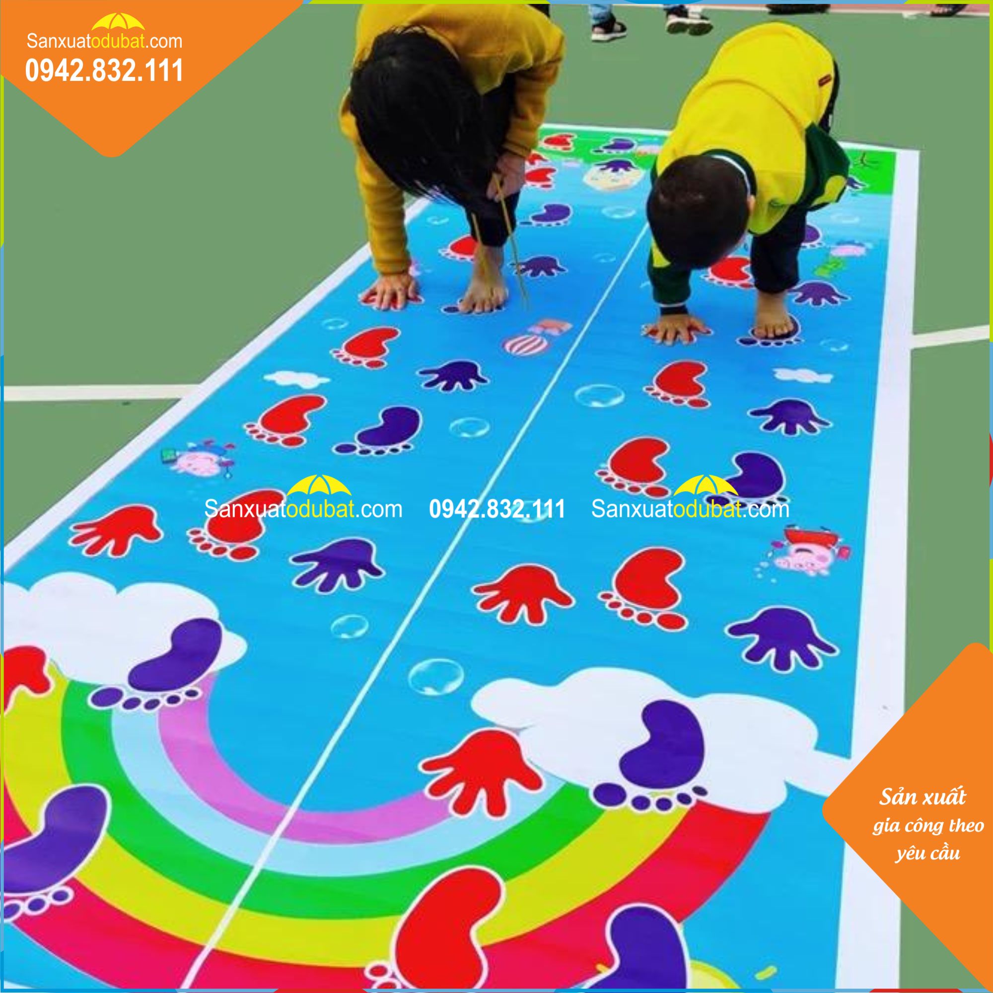 - Sản phẩm được thiết kế với các hình bàn tay và bàn chân nhiều màu sắc nổi bật trên nền thảm, thu hút ánh nhìn của trẻ và kích thích trẻ tham gia hoạt động.